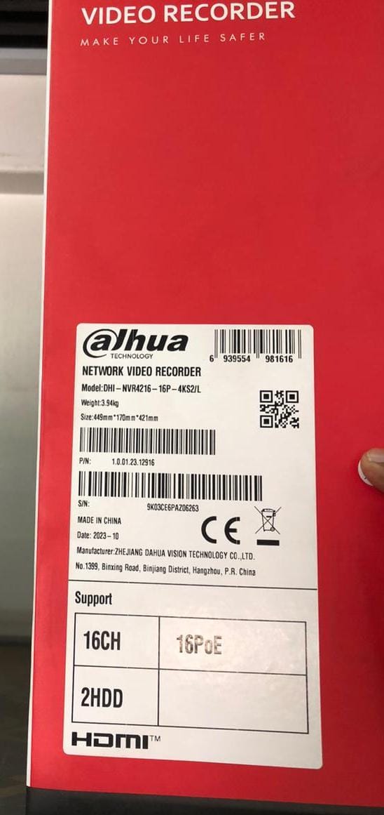 The Dahua 16‑Channel PoE NVR is a high-performance network recorder designed for medium to large IP surveillance systems. It supports 16 IP cameras with built-in PoE, H.265+/H.264+ compression for efficient storage, and dual HDD bays for long-term recording. With HDMI/VGA outputs and remote mobile access, it offers easy monitoring, playback, and management for homes, offices, and commercial spaces.